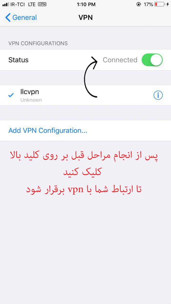 پس از مراحل بالا بر روی کلید cennceted کلیک کنید تا به وی پی ان وصل شوید